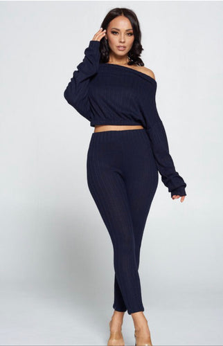 Solid Heavy Rayon Spandex Long Sleeve Crossed Over Long Top And Leggings 2 Piece Set